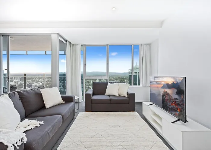 A 80 m²-es 1 Bedroom Hinterland Apartment In Surfers Paradise - Q Stay Gold Coast kényelmes közelségben van olyan városi látnivalókhoz, mint az alig egy 5 perces sétára található Végtelen. A vendégek Gold Coast Coloane körzetében barangolva igénybe vehetik a jakuzzit, pezsgőfürdőt és szaunát.